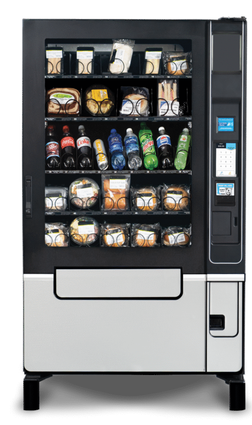 The Evoke Elevator merchandiser brings together the latest in vending technology, enhanced merchandising and attractive styling. With up to 60 selections (standard configuration is up to 50 selections with five trays of ten selections per tray), along with a soft elevator delivery, the Evoke Elevator offers maximum product versatility. The soft elevator delivery allows you to vend fragile items such as sandwiches, salads, fresh fruit cups, and carbonated beverages from all trays and ensures optimal product rotation through First-In First-Out (FIFO) loading.